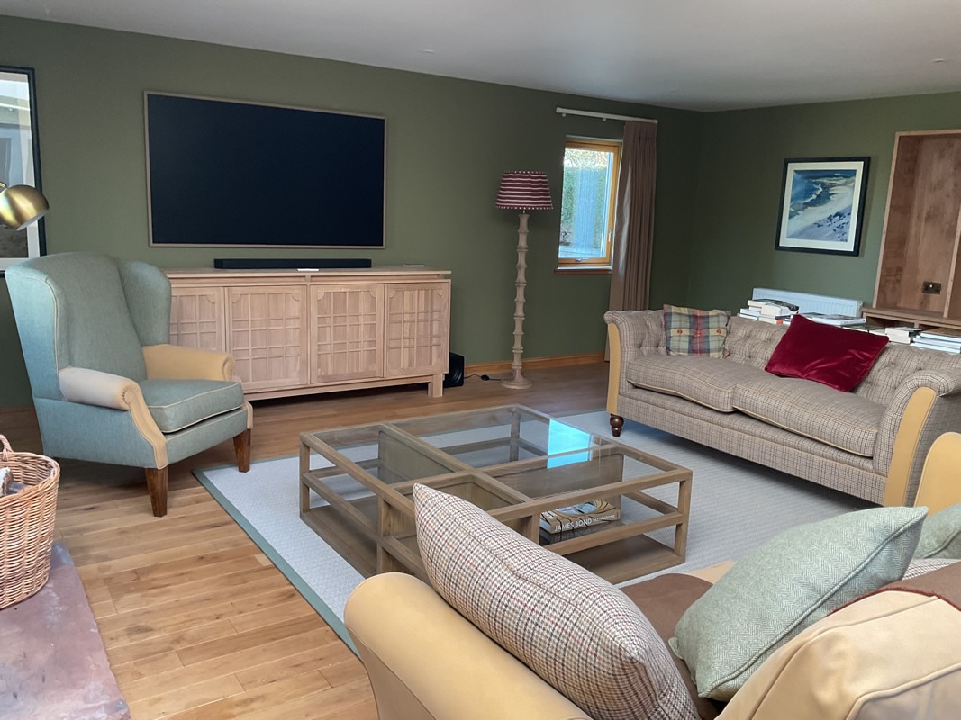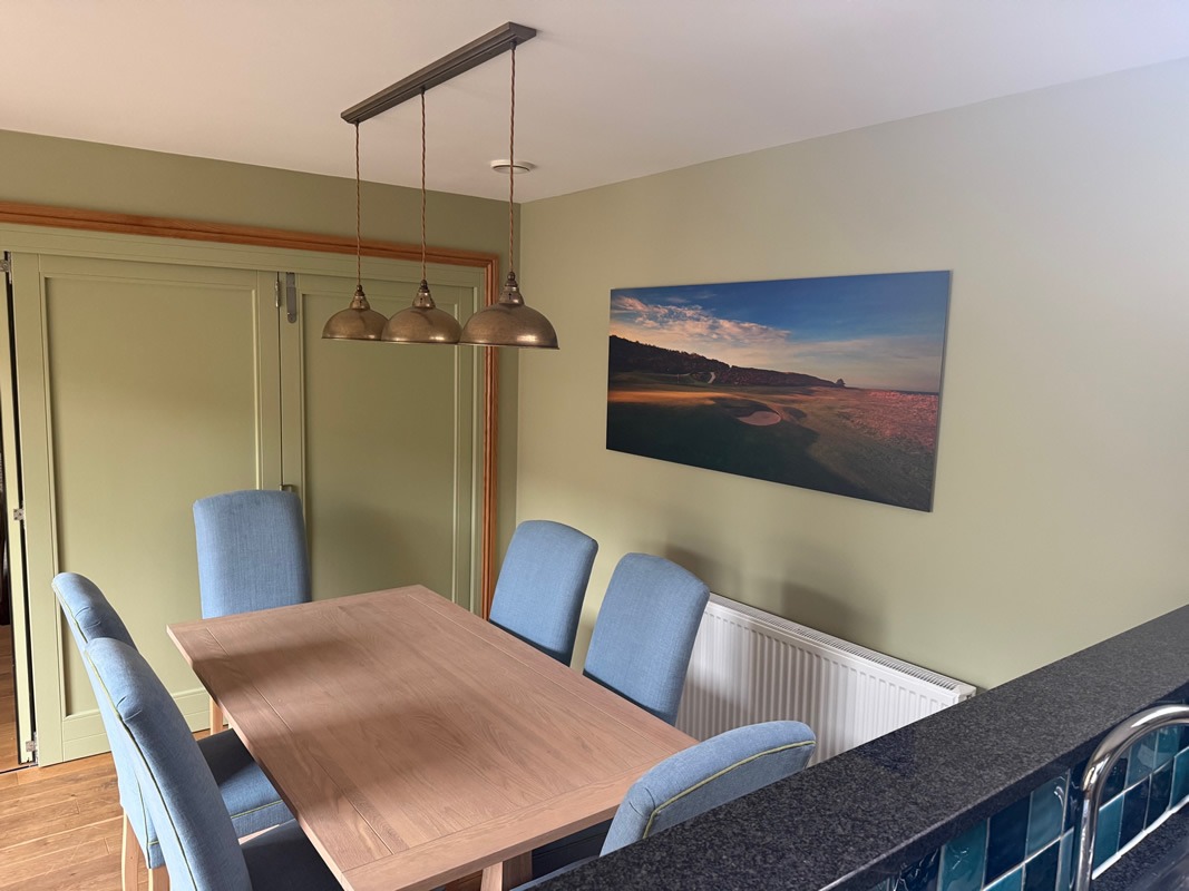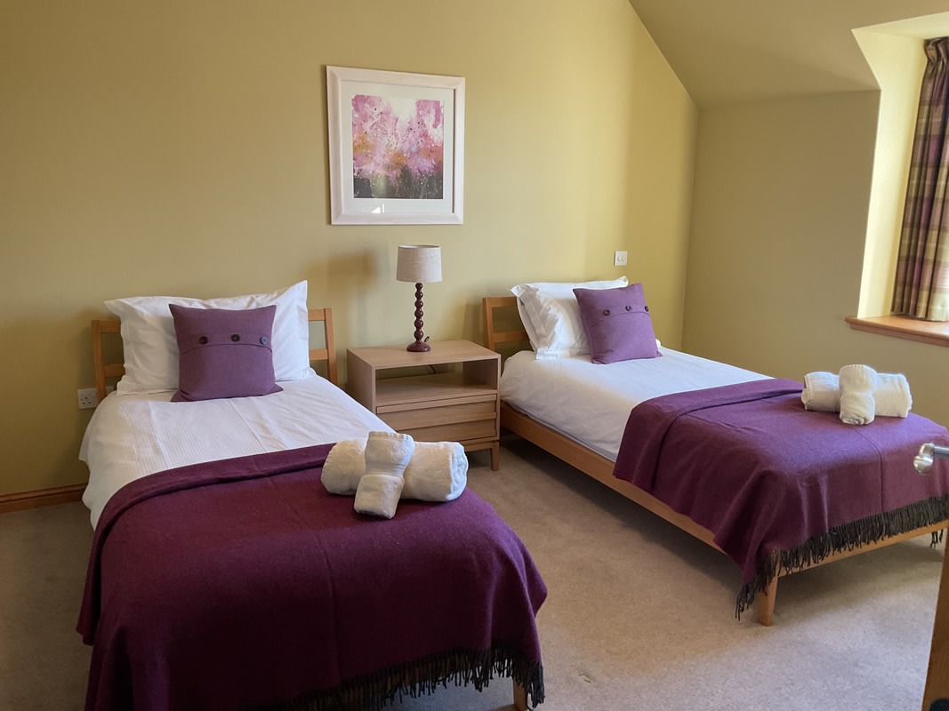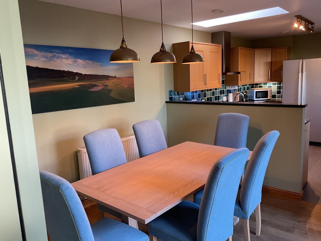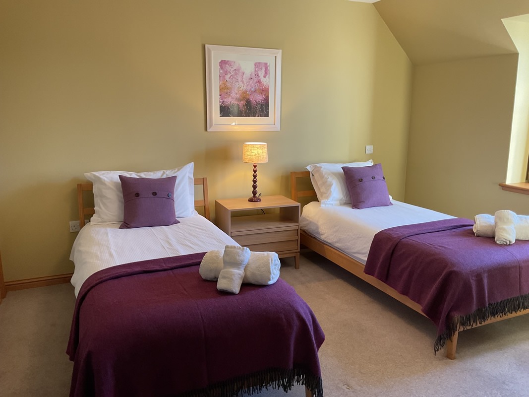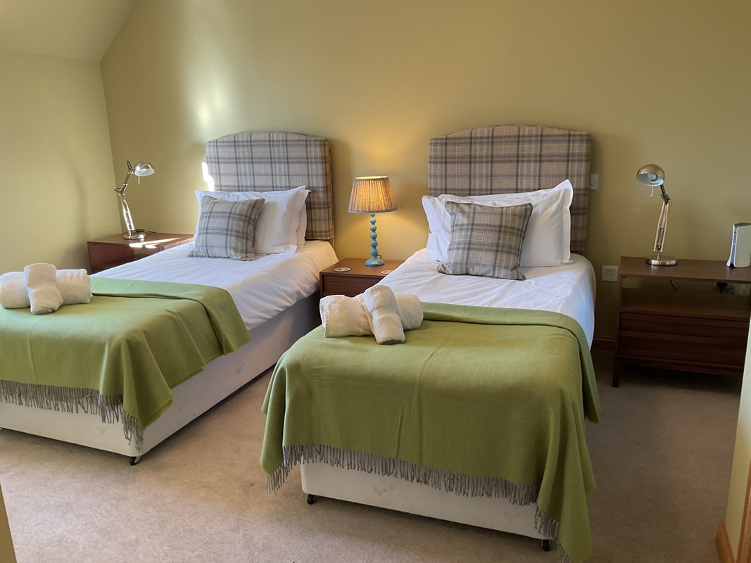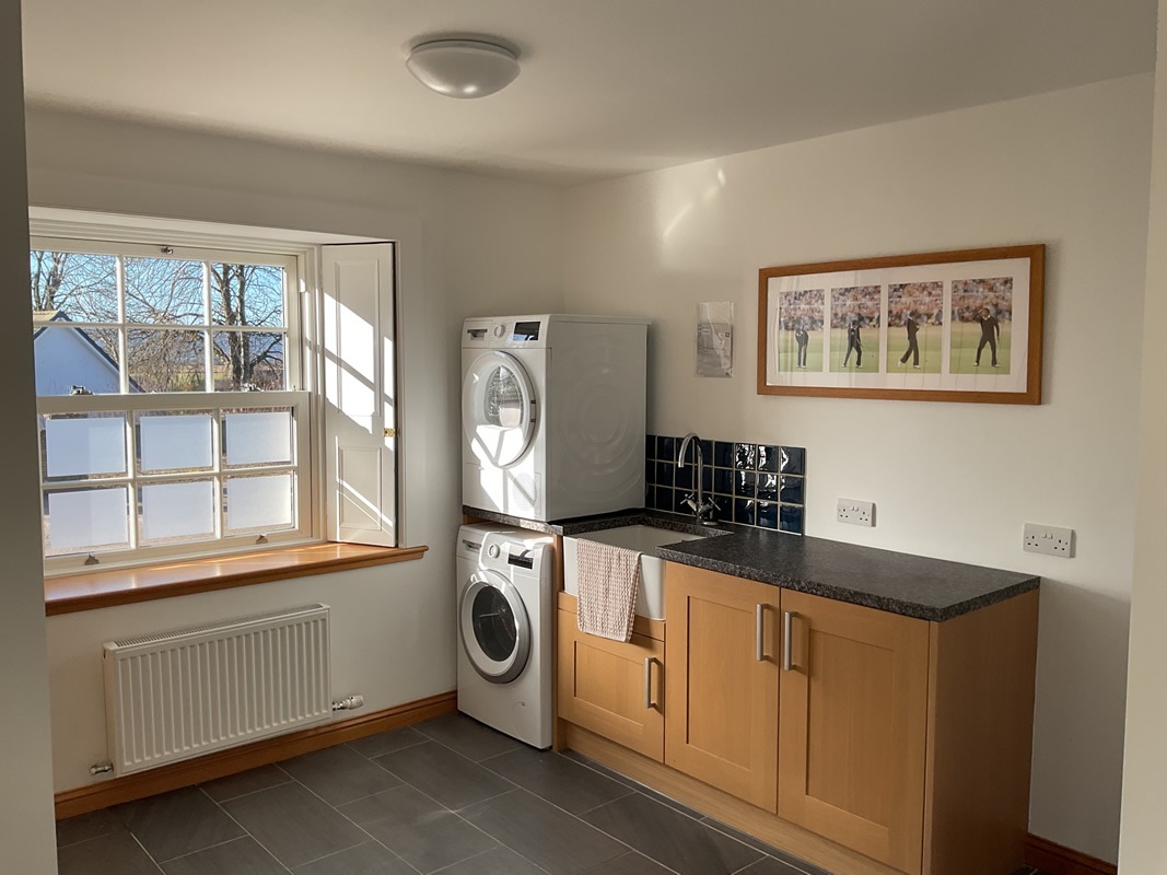 Upstairs there are two twin bedrooms and a bathroom with a tub. The downstairs ensuite is suitable for people who find stairs a challenge, and there are easy ramps on the outside doors. The utility room has a washing machine and tumble dryer, with plenty of space for walking boots, fishing gear or golf clubs, and the door leads directly out towards the golf course.