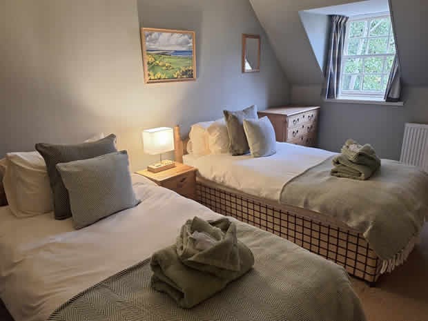 The House has 2 good sized bedrooms on the first floor, 1 double & 1 Twin, each with their own full bathroom. (1 en-suite, 1 directly outside room)